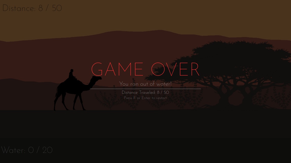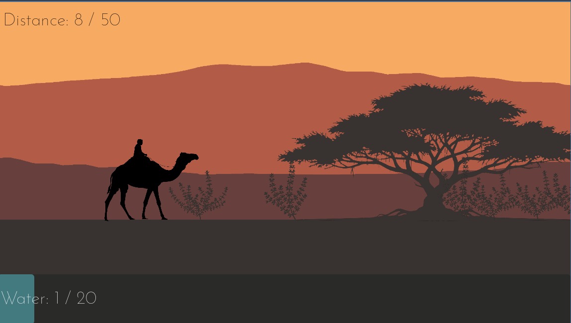 You must reach the next oasis without running out of water. Collect water from desert fauna by clicking on them as they pass by.